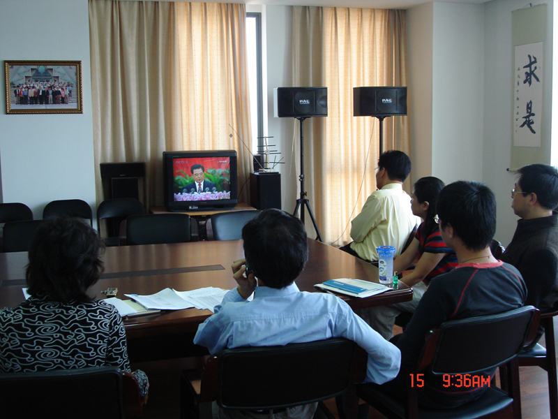 10月15日上午9时,万众瞩目的中国共产党第十七次全国代表大会在人民大会堂隆重开幕。为了使学院教师党员能及时了解大会信息和大会精神,化工学院党总支组织学院教师党员和部分教师在行政楼学院会议室收看了大会开幕式。大会上胡锦涛总书记作了题为《高举中国特色社会主义伟大旗帜 为夺取全面建设小康社会新胜利而奋斗》的报告。学院教职工认真收听了报告,并在休会后积极讨论,纷纷表示要认真学习领会十七大会议精神,紧密团结在党中央周围,不断提高党的创造力、凝聚力、战斗力,为夺取全面建设小康社会新胜利而奋斗!
