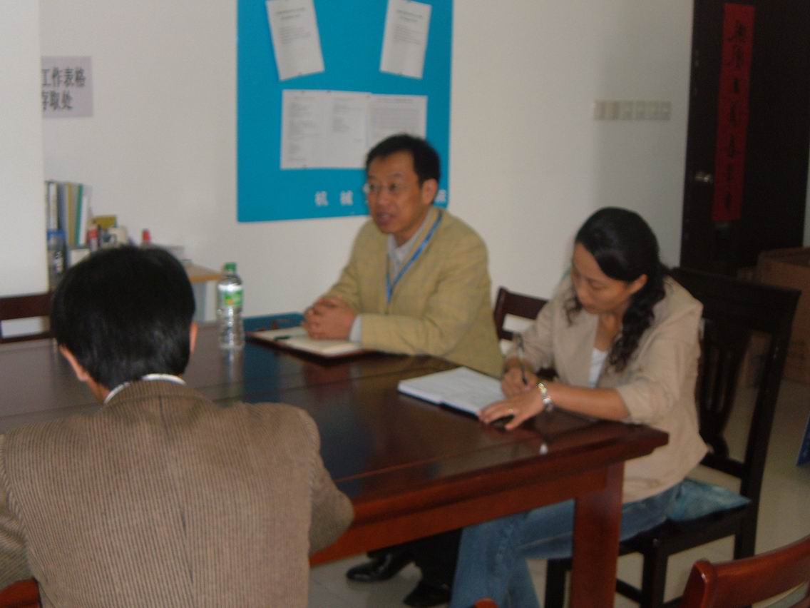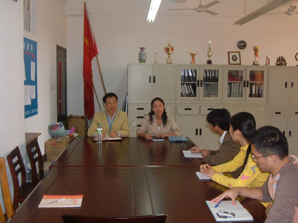 |  10月17日上午,机械工程学院党总支书记、副院长姚黎明老师和党总支副书记虞蓉老师专程来到教学楼C103,与正在学院学生工作办公室工作的全体辅导员开展交流座谈活动,由学院党总支副书记虞蓉老师主持。 姚黎明老师首先代表学院的党政领导对长期坚持在学生工作第一线的辅导员们表示深切地慰问和由衷感谢。姚老师深情地回忆了他在做辅导员时的工作情景,并勉励所有的辅导员要爱岗敬业、认真负责。随后,姚老师听取了全体辅导员的工作汇报并深入了解了学院辅导员在开展工作过程中所遇到的困难。最后,姚老师表示学院一定会尽最大的努力来支持辅导员队伍的建设和辅导员工作的开展,希望大家能够在党的十七大精神的指引下做好自己的本职工作,为党的高教事业再立新功! 赵晔煚