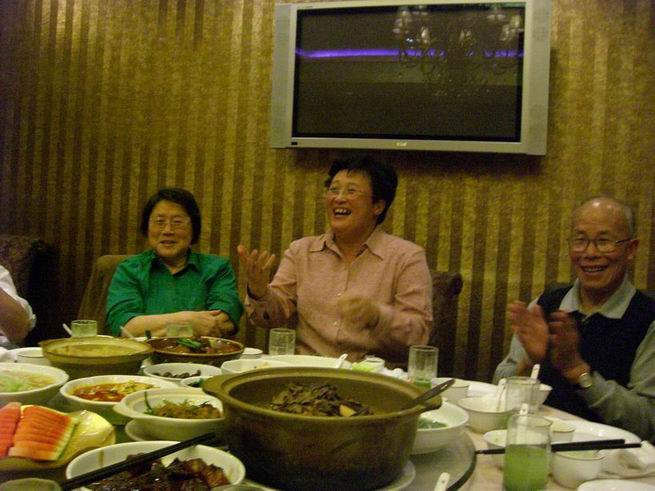 席间,沈立娟老师即兴清唱了沪剧《燕燕作媒》,激起了大家的表演兴致;杭育老师和陆新葵老师用俄语合唱《莫斯科郊外的晚上》,博得了大家的满堂喝彩;汪泓校长的一曲《夫妻双双把家还》更是将午宴的气氛推向了高潮。