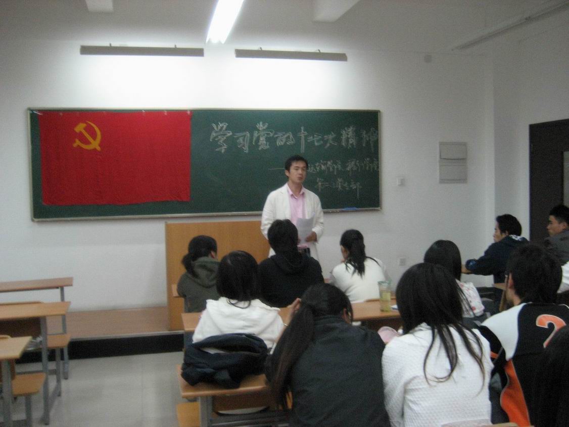 | 10月31日16:30,航空运输学院、飞行学院第二、三支部全体学生成员在第三支部书记马建立老师的组织下,于教学楼D110教室组织学习了党的十七大精神。 会议主要以老师的讲授为主,辅以同学们的自主学习、发言。马老师首先对刚刚胜利闭幕的十七大进行了概述,然后向同学们详细介绍了十七大的主要议程、报告的主要内容、历史地位和历史意义,随后同学们进行自主学习和讨论。 同学们一致认为,举世瞩目的十七大,是一次承前启后,继往开来,高举中国特色社会主义伟大旗帜,为夺取全面建设小康社会新胜利而奋斗的历史盛会,具有重要历史地位和深远历史意义。 这次学习,主要是让同学们在思想上跟上党的先进步伐,为培养优秀、先进的学生党员打下基础。 学生信息员:苏超 |