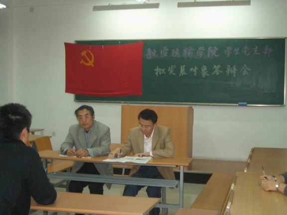 | 11月1日晚18:30,航空运输学院在教学楼D110室召开了“学生党支部拟发展对象答辩会”。学院党总支副书记路新生老师,学生党支部一支部书记姜孟升老师作为答辩老师参加,共对10位航空学院拟发展对象进行了答辩。 答辩会从飞行专业的管纯昊同学开始。路老师和姜老师考察了同学们对中国共产党的性质、党的最高纲领、最低纲领等基础知识的认识。随后,姜老师不仅从关注社会,更从生活、学习等多方面提出了问题,而路老师对党的发展历程、基本理论的阐述更增强了大家渴望早日加入党组织的愿望。 答辩会作为航空运输学院对拟发展对象考察的一种重要的形式,是学院学生党支部在学生党员发展上的一种新的探索,目的在于使学生党员真正成为党的忠诚战士,引领学风的标兵,广大同学的知音,朴实生活的楷模,奉献社会的先锋。通过这次答辩会不仅让拟发展对象认识到自己平时理论学习中的不足,进一步端正了入党的动机,从而更好地实现“小我”—个人价值与“大我”—社会责任的统一。 |