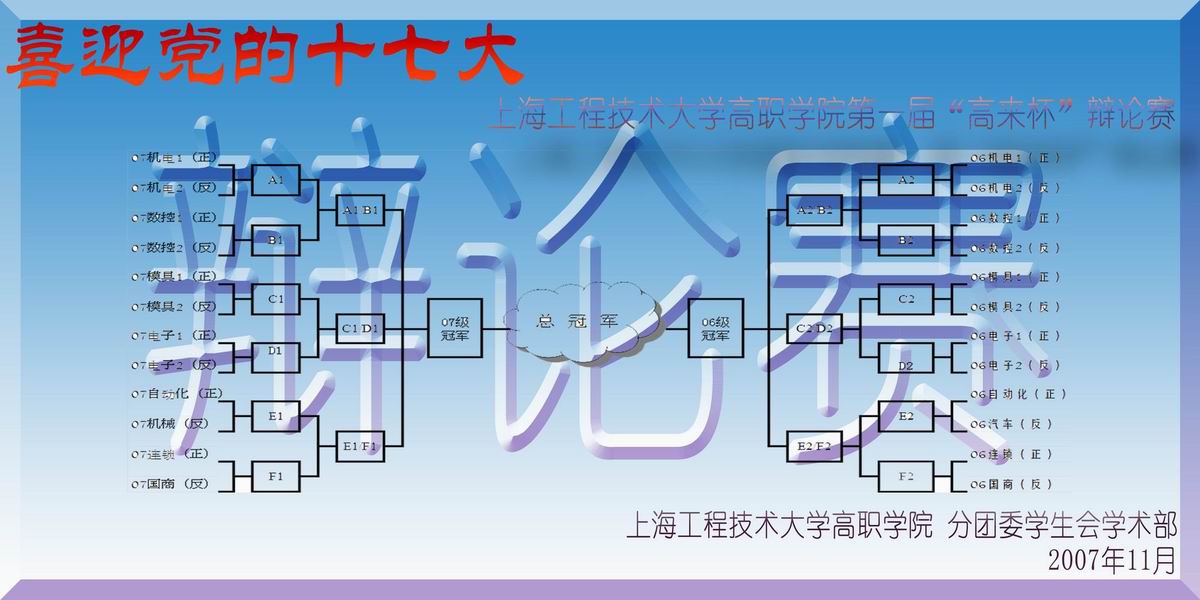 高职学院分团委近期组织开展了以“学习十七大精神”为主题的首届高职学生辩论赛,以升华当代大学生的精神风貌,弘扬党的重要理论光辉。