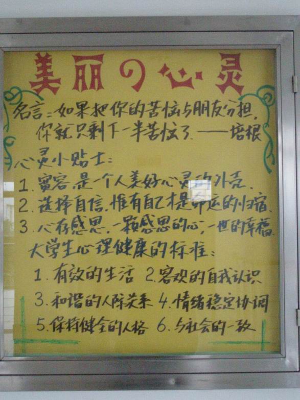 随着社会竞争的日趋激烈,大学生面临学习、交往、交友、就业等各种方面的压力也日趋严重。如何及时把握大学生的心理状态并做好应对措施就显得尤为重要。心理观察员的设立是一种比较合理且有效的措施,通过对心理观察员的培训,让他们能及时有效掌握身边同学的思想动态,并及时将信息反馈给老师,也是减少突发情况发生的好方法。 通过层层传递,让学生自己学会自我管理,自我调节,有助于他们今后的人生发展,并且具备较强的抗挫能力,勇敢面对学业,面对未来的工作。 心理健康教育系列培训本着培养大学生的良好心态,敢于面对生活的态度,将会继续开展下去。 万慧琳 | |