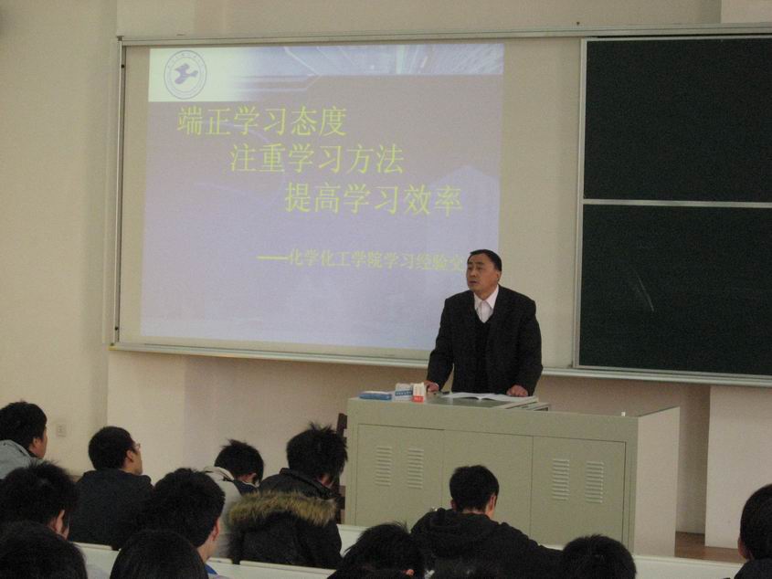 会上,资深化学教师丁德润副教授为大一学生系统性地讲授了大学学习方法的重要性,并指出同学们如果不改变高中以来一些不良的学习习惯,将很难在大学的学习过程中“开花结果”。 王佳杰 | |