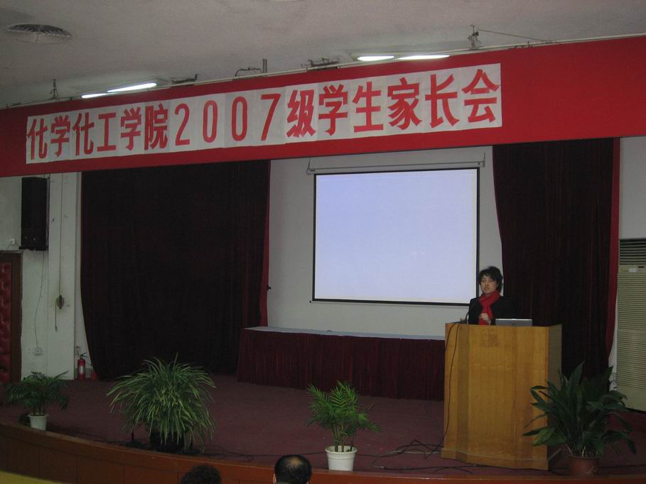 | 2007年12月14日晚上18:00,化学化工学院07级新生家长会在我校仙霞路校区演讲厅召开,化学化工学院党总支书记董义明老师、院长徐菁利老师、党总支副书记茅红柳老师出席了会议,07级学生辅导员和各班的班导师参加了会议,会议由茅红柳老师主持。 徐菁利院长首先对各位家长的到来表示感谢,并通过幻灯片演示,详细地向家长们介绍了学院各专业的培养目标以及学院对大一学生的培养措施,并结合前几届学生的就业情况动员各位家长和学院共同努力,关注07级新生的学习、生活,使其早日适应大学环境。 茅红柳老师就目前大一学生学习中出现的部分问题与学生家长进行了沟通,并介绍了学校的奖学金制度,结合学院特点,从学生工作的角度出发,以详实的数据分析了部分学生期中考试失利的原因,希望家长督促学生抓紧大一学习的宝贵时光,以更为积极的态度去迎接大学四年的人生成长。 随后,07级学生辅导员和各班班导师分别和本班学生的家长作了进一步的沟通和交流,对学生情况和家长普遍关心的问题一一给予了回答,家长反响热烈。 家长会使家长们普遍认识到了目前学生在学习中存在的不足之处,也进一步了解了学院的教育优势和人才培养模式,家长们表示将全力支持、配合学校做好大一学生的教育工作。 |