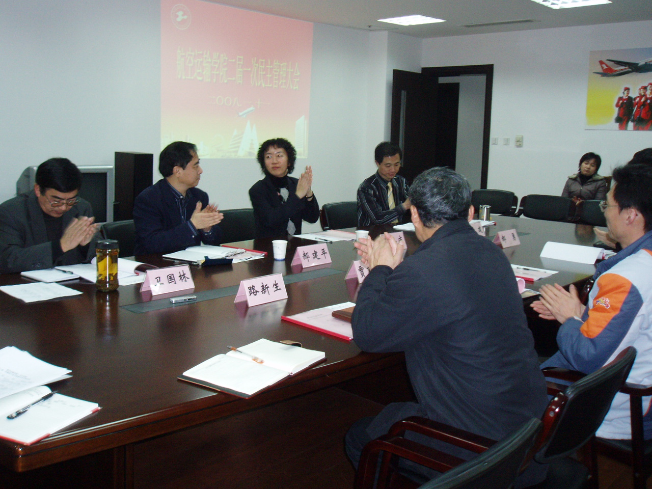 航空运输学院/飞行学院二届一次民主管理大会的胜利召开,是航空运输学院/飞行学院教职工民主参与学院管理,发扬主人翁意识的重要表现。航空运输学院/飞行学院全体教职工将同心同德,团结一致,抓住2008年的发展机遇,为学校及两院建设贡献力量! | |