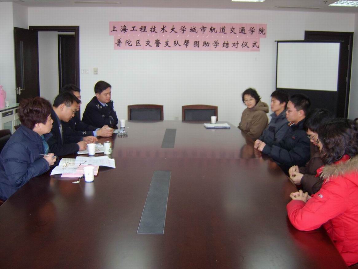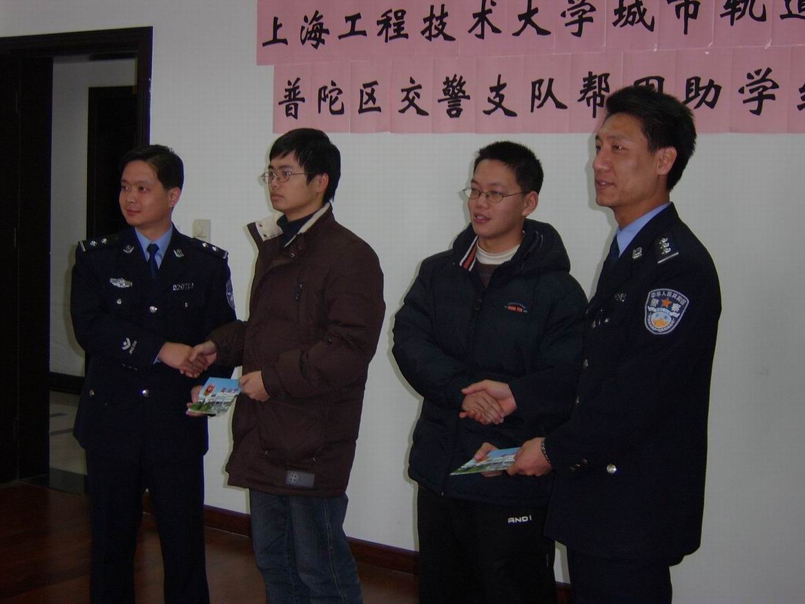 |  2008年1月24日上午10:00,普陀区公安分局交警支队事故审理科的两位警官代表来到城市轨道交通学院进行帮困助学结对。仪式由学院党总支副书记徐建华老师主持。 结对仪式上,徐建华老师简要介绍了学院的帮困情况及措施,并对普陀区交警支队对学院困难学生的资助表示忠心感谢。受助对象朱清同学和邵圆承同学各自表示会加倍努力学习,受助同时,不会忘记回报社会。普陀区公安分局交警支队代表沈警官和钱警官对两位受助同学提出了殷切的期望,希望他们立大志,成大气。 学院党总支书记徐馨老师对普陀区交警支队的社会帮困给予高度评价和真挚的谢意,希望以后能继续合作,并希望我们的受助学生发奋图强,努力学习,成为国家有用之才。 万慧琳 |