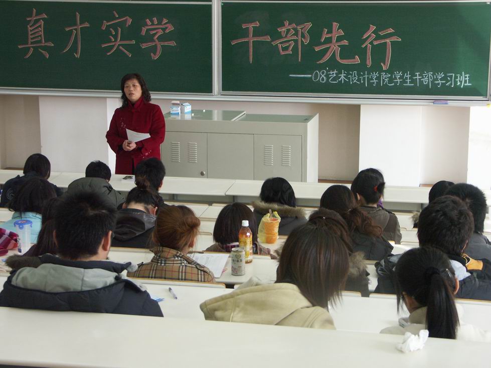 | 新学期,新气象。为了进一步营造和弘扬学院的良好院风和学风,2月24日下午13:00,艺术设计学院在A315教室举办以“真才实学,干部先行”为主题的学生干部学习班,副院长许传宏、学院全体辅导员和各年级各班班长、团支书共115名师生参加。会议有党总支副书记何志琴主持。 艺术设计学院开学伊始就举行学生干部学习班,旨在以培养品学优群为抓手,以激励班干真才实学为助力,营造良好的学习氛围。学习班上许传宏副院长指出,“真才实学,干部先行”,就是要倡导良好学风;学风是校风、院风的重要组成部分。 在热烈的学习过程中,何志琴老师不失时机地提出“如何才是合格的干部?”等问题,并鼓励班干部踊跃阐发自己的见解和心声,掀起了学习讨论的高潮;她要求主要班干部努力发挥以下作用:一是在学风、班风、校风建设中发挥模范带头作用;二是要在各项活动中发挥组织领导作用;三是要在日常管理中起到桥梁纽带作用;四是在思想教育中发挥助手作用。同时还要求树立“三个意识”:即政治意识、责任意识和服务意识。做一名学生干部不仅光荣,而且责任重大,她相信班干们一定能不负众望,为孕育和谐向上的育人氛围贡献力量。 集中学习结束后,各年级还分别进行了讨论。 刘江 裘立行 |
