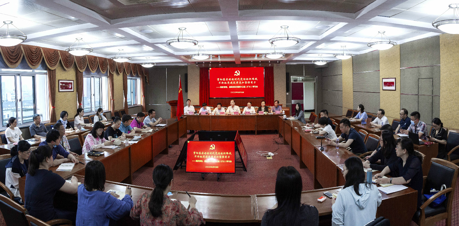 7月15日上午,高职学院、高级技校党委在综合楼9楼报告厅举行以“学习贯彻落实好新时代党的组织路线,不断把党建设得更加坚强有力”为主题的中心组(扩大)学习会,专题学习中共中央政治局关于“深入学习领会和贯彻落实新时代党的组织路线”第二十一次集体学习的精神、习近平给复旦大学《共产党宣言》展示馆党员志愿服务队全体队员的回信、习近平总书记谈如何学《共产党宣言》。学院、校党委中心组成员、各党支部书记和支部委员、党办参加了学习讨论。