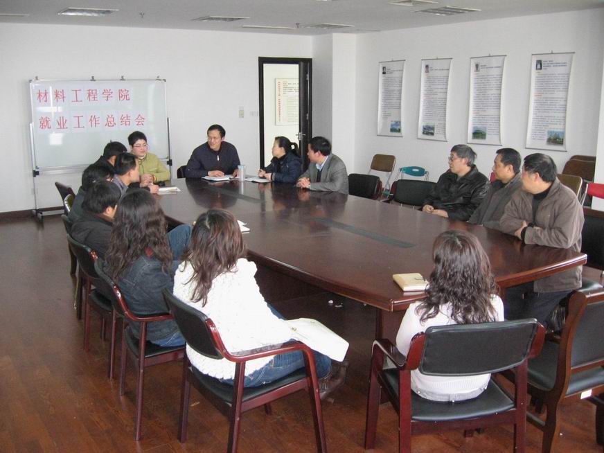 2008年2月29日下午,材料工程学院召开就业工作总结会,学院党政领导和班导师参加了会议。 会上,负责材料学院就业工作的辅导员吴挺老师总结了07年的就业工作,对08年的就业工作进行了布置;07年被评为就业工作先进个人的林文松老师谈了工作体会,并和在座的班导师分享了班导师工作的经验;学院领导分别从不同角度对学院的就业工作进行了总结和评价,最后党总支书记徐国祥老师对08届班导师毕业班的工作进行了详细的指导并提了要求。学院对07届毕业生班导师进行了表彰。 薛玲 稿件作者:薛玲责任编辑:陈文琼