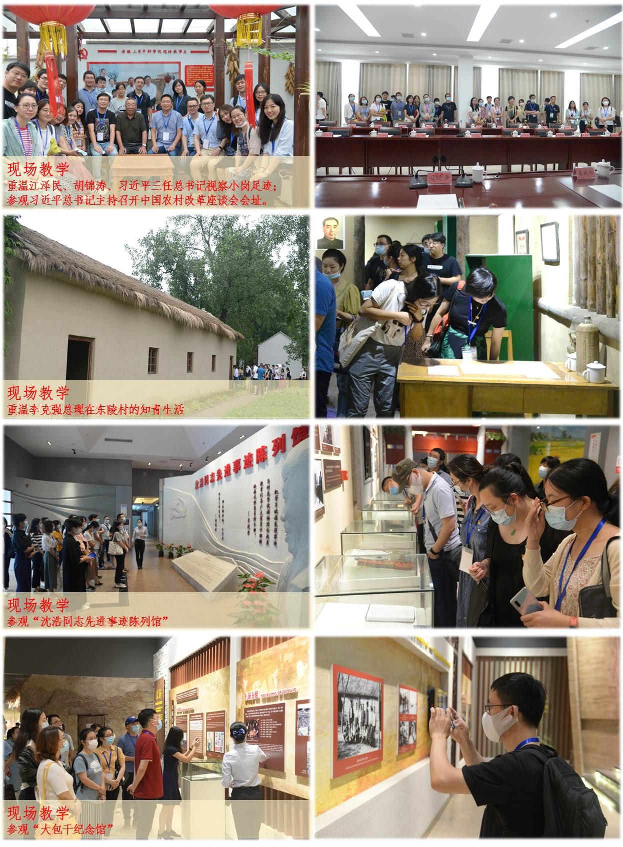 习近平总书记在2018年11月考察上海时表示,“希望上海继续当好全国改革开放排头兵、创新发展先行者,勇于挑最重的担子、啃最难啃的骨头,发挥开路先锋、示范引领、突破攻坚的作用,为全国改革发展作出更大贡献。”为贯彻落实党的十九届四中全会精神,深入学习改革开放史,探寻改革源头,7月12日至15日,学校党委党校组织2020年组织员履职能力提升培训班和青年留学归国教师示范培训班学员一行到安徽小岗干部学院开展现场教学。