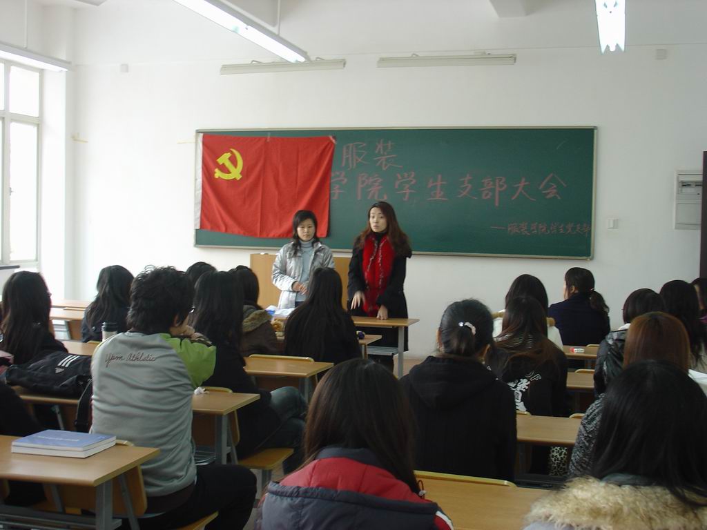 | 服装学院学生第一党支部于2008年3月7日下午13:00,在教学楼D114召开新学期第一次组织生活会。会议由学院学生第一支部书记陈小琼和学生辅导员郑艳老师主持,学院党总支副书记袁蓉老师参加会议并作了讲话。首先袁蓉老师对学生党支部和学生党员分别提出了新的要求。要求学生支部以十七大精神为指引,进一步落实科学发展观,创新思维,积极开拓学生支部工作新思路;党员学生要发挥“一名党员,一面旗帜”的作用,引领学院学生营造积极向上的良好学习氛围。“两会”是我国政治生活中的一件大事,关注“两会”,学习领会全国“两会”精神,对进一步领会和落实十七大精神,开阔工作视野,启迪工作思路,做好新学期的学生支部工作起到重要指导作用。袁蓉老师号召学院全体学生党员关注“两会”,学习领会全国“两会”精神。同时指出,深入学习十七大精神 和“两会”精神将作为今后学院学生党支部的一项重要任务。接着陈小琼老师和郑艳老师带领学生党员认真学习了“两会”的一些基本知识。通过学习,学生党员开阔了视野,深受鼓舞,纷纷表示,在十七大精神的指引下,高举建设有中国特色社会主义的伟大旗帜,认真学习科学文化知识,勇于实践,积极探索,把自己塑造成为社会主义事业合格的接班人。 | |