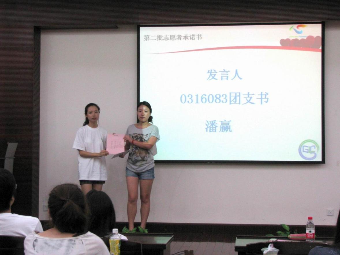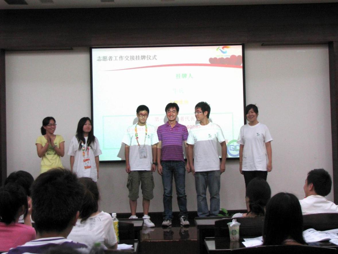 |  7月5日9:30,管理学院世博上航国旅VIP接待志愿者交接仪式在图文信息中心第三报告厅举行。管理学院世博志愿者工作分站站长、分团委书记周家樑老师,VIP志愿者带队老师金佳雯,0316081班班主任牛兵老师,0316071和0316073班的辅导员李柳维娜老师,工作分站副站长游军政参加了本次仪式。 仪式开始,金佳雯老师为第二批VIP志愿者做动员,鼓励他们延续第一批志愿者们的出色表现,并使这支队伍更加出众。会上播放了志愿者的一段工作视频,记录显示了第一批VIP志愿者辛勤的汗水与欢笑的脸庞,同时也留给了在座的08级志愿者宝贵的财富。大家看到了前一批志愿者们的努力,都鼓励自己在今后的工作中做到更好。我院有6名VIP志愿者被评为校级的校园志愿之星,这是他们的实际行动换来的荣誉。被评为5月优秀志愿者的徐晓璐同学与大家分享了工作感想,使大家对工作有进一步的理解。除此之外,另一名志愿者蔡丽萍也为大家讲述她的工作经历,虽然没有丰功伟绩,但踏踏实实,勤勤恳恳,非常优秀。我院还评出5月份最佳小组,他们是以仲玥、张鑫、李静、陆晓霞、徐岑、董蕾铃、赵珺、刘芸佚组成的第一小组,由李柳维娜老师为其颁奖。第一批VIP志愿者的工作已近尾声,第二批将投入工作,为了能够顺利地接替工作,由第二批代表潘赢宣读承诺书,并递交于金佳雯老师。李柳维娜老师与牛兵老师也为第二批志愿者举行了挂牌仪式。接着由领誓人易千杰带领大家喊出口号,展现了第二批志愿者的士气。最后由管理学院世博志愿者工作分站站长周家樑老师为大家介绍“志愿者的志愿者”。有了他们,志愿者事迹才能更多地呈现,有了他们,才有志愿者手中的“问与答”手册,同时也希望第二批志愿者能做到比第一批更好。 VIP志愿者交接仪式到此落幕,第二批志愿者将展开工作,祝愿所有的志愿者工作顺利。 本次交接仪式旨在为第一批VIP志愿者进行表彰,同时动员第二批志愿者全身心投入即将迎来的工作。 | | | 稿件作者:周佳丽 责任编辑:陈文琼