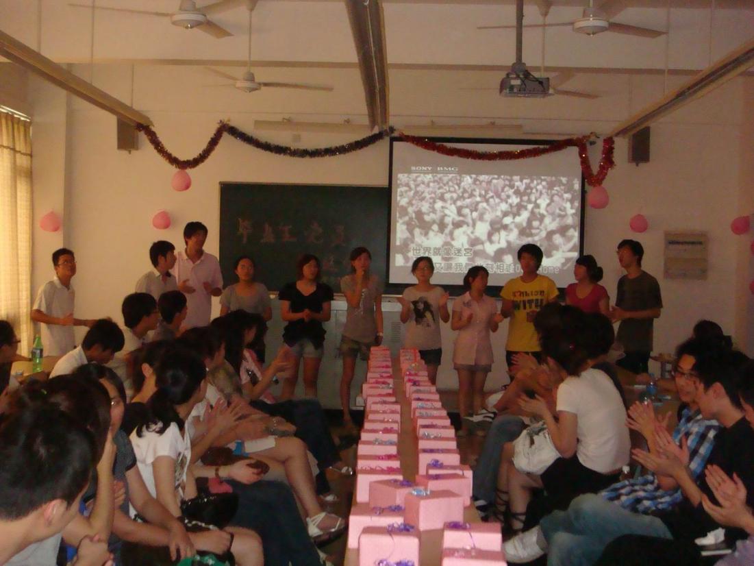 |  7月7日,管理学院学生第一党支部在教学楼E311为大四毕业生党员举行06级毕业生党员欢送会。虽然黄梅天气炎热,但无论是毕业生党员还是低年级党员,大家依旧热情高涨,现场气氛热烈。 一首《爱因为在心中》的08级学生党员合唱拉开了整场毕业生党员欢送会,歌声中承载了学弟学妹们对即将毕业的学长们的祝福。随后,由09级学生党员何文聪同学宣读了文明离校倡议书,倡议大四毕业生党员带头文明离校。“击鼓传花”的小游戏调动了整场的气氛,大四的毕业生们与一支部的党员们分享了自己大学四年中最难忘一位老师、最囧的一件事情以及最想感谢的人,每个人的发言都勾起了一段难忘的大学记忆。大四毕业生党员合唱《再见》将整场欢送会推向了高潮。 最后支部的毕业生党员范蓉、金言两名同学代表大四毕业生党员发言,学长们分享了自己走上社会的一些经历,语重心长给予低年级学生党员一些中肯的建议。学生第一党支部书记张可菡老师在欢送的最后也送上对毕业生党员们的祝福,希望他们可以在工作岗位上时刻牢记自己的党员身份,起到先锋模范作用。而毕业生党员们也为张老师送上了一份小小礼物以感谢老师在大学生活中的帮助和关怀。 歌声、气球、礼物、手印承载了太多毕业生党员对于大学生活和党支部的记忆,如今,他们即将离开校园,踏上社会,祝福他们可以在新的领域一展才华,依旧成为先进的表率。 | | | 稿件作者:陆敏智 责任编辑:陈文琼