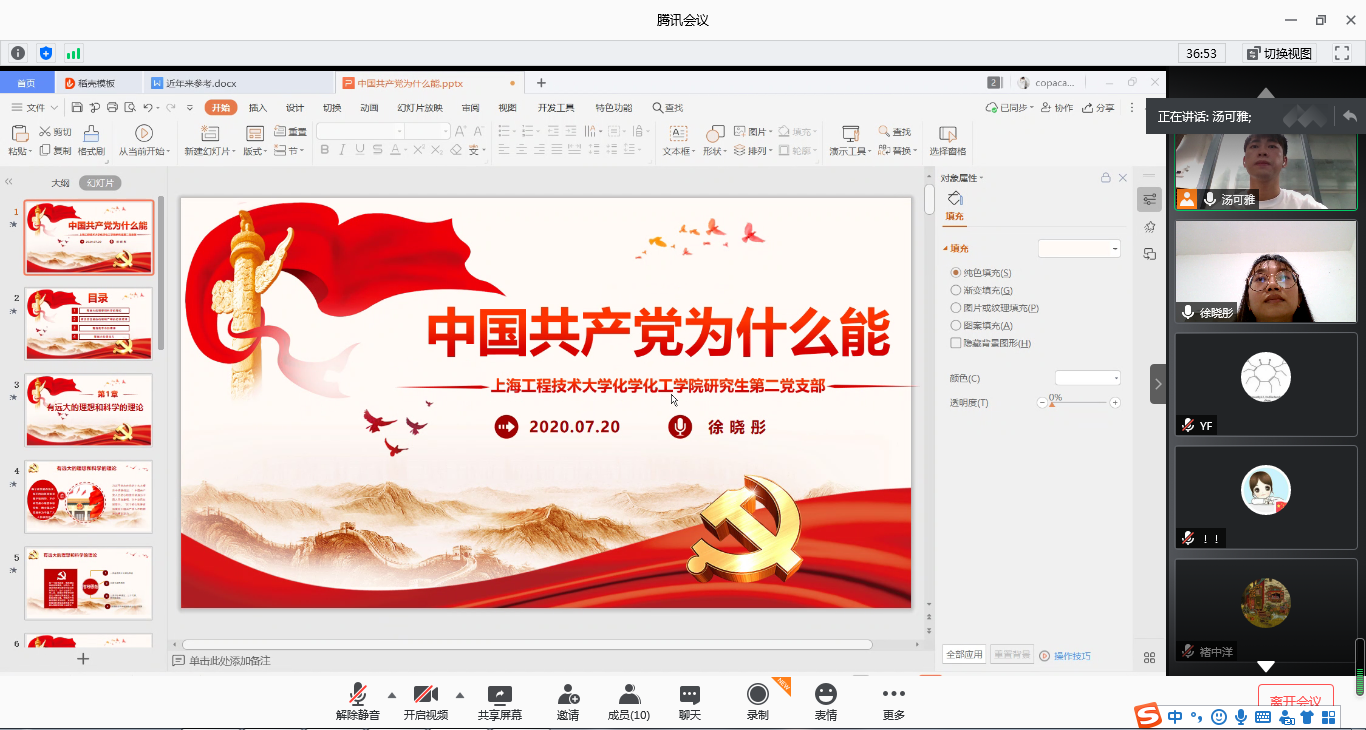 为深入贯彻落实“四史”学习教育,7月20日下午,化学化工学院研究生第二党支部在腾讯会议平台召开了“四史”学习专题党课,支部全体党员参加学习。