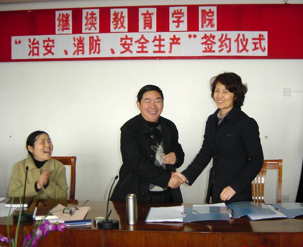 | 4月1日下午,继续教育学院召开了由学院领导和全体教职工参加的学院“治安、消防、安全生产”责任签约会议。会议由胡兰副院 长主持,她谈到:安全工作关系到学校的稳定。学校是人口密集区,因此学校历来极为重视安全工作和安全工作的落实情况。近年来,随着继续教育学院办学规模的不断扩展,治安、消防、安全生产工作要为学院改革发展提供强有力的制度保障,更彰显其紧迫性和重要性。责任签约是贯彻落实安全责任制的重要手段,除此之外还必须加强值班、检查、事故预案等制度的制定与落实。会议最后,马力中院长代表学院与院各部门负责人签订了治安、消防以及安全生产责任书。 |
