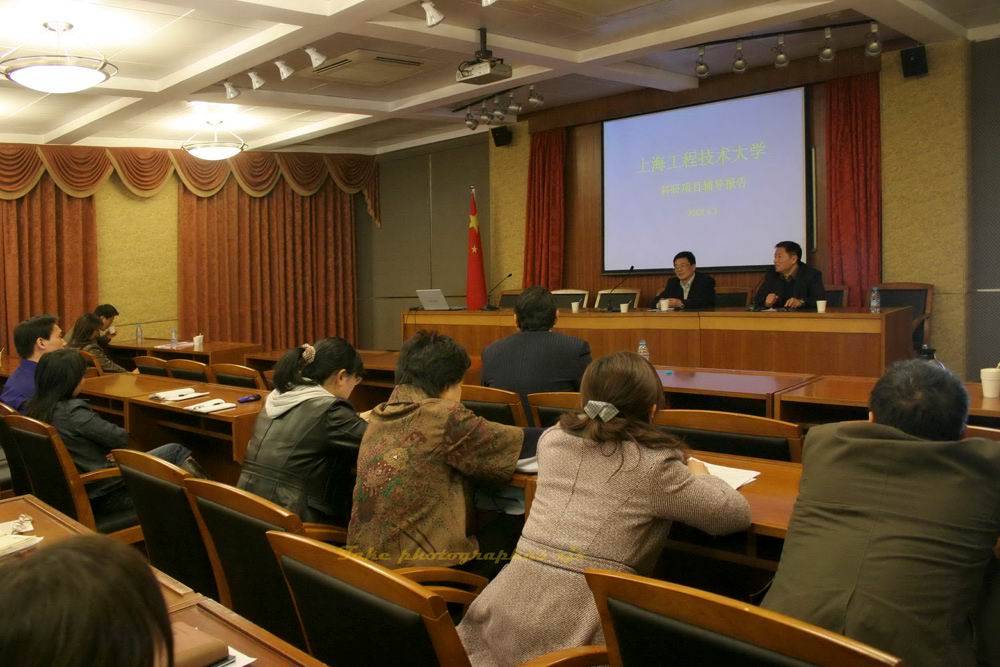 胡守中处长首先介绍了工程大近年来的科研工作情况,他指出,高等教育过程中的教学和科研是支撑学校发展的二个主体,上海工程技术大学自2000年以来,在学校党政的关心支持下,经过各学院的通力协作,科研工作从无到有,科研经费逐年上升,从原先的每年400多万元到现在的每年6000万元,一年有10多项专利申报,凝聚着全体教师的辛勤努力。接着他又对高职学院新引进的高学历教师在科研工作上的要求提出了自己的看法,并介绍了学校实施“立项有鼓励,成果有奖励”的政策,希望学院在科研工作上有所建树。