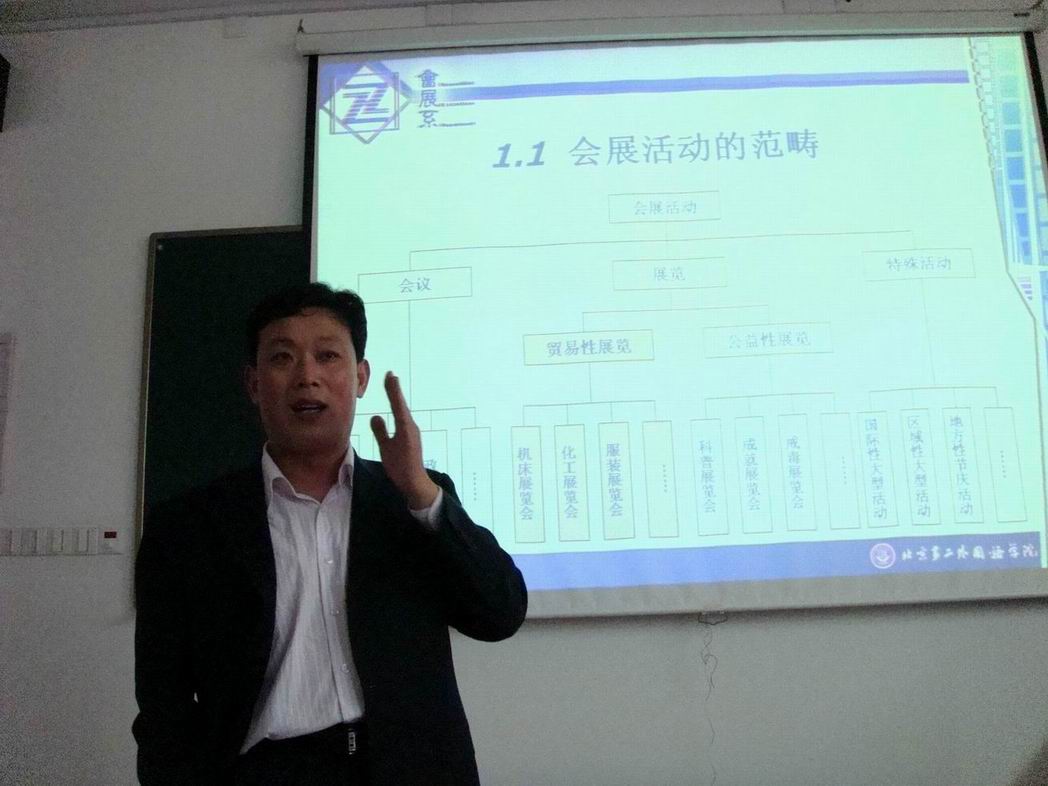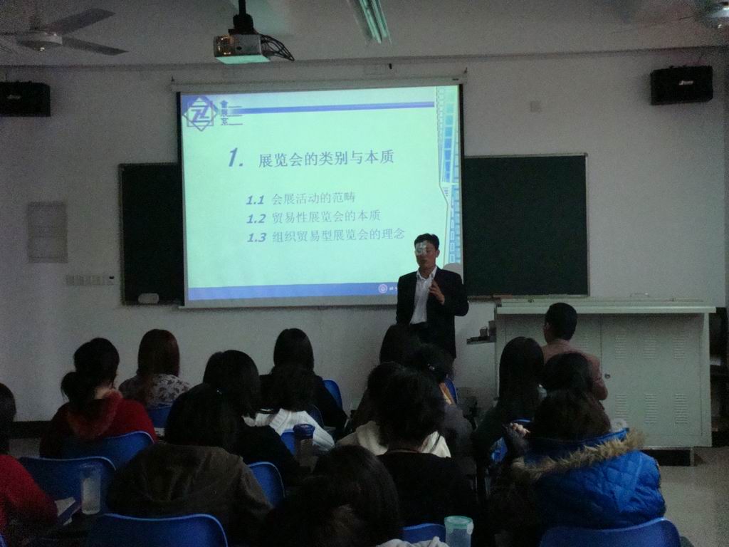 4月9日晚14:30,艺术楼A503报告室里座无虚席。由艺术设计学院邀请的北京大学博士后、北京第二外国语学院会展研究中心主任、中国国际贸易学会会议和展览专业委员会主任、中国会展教育早期的开创者刘大可教授来学院讲学,讲学报告的题目是《现代会展营销实务》,报告由艺术设计学院副院长许传宏主持。