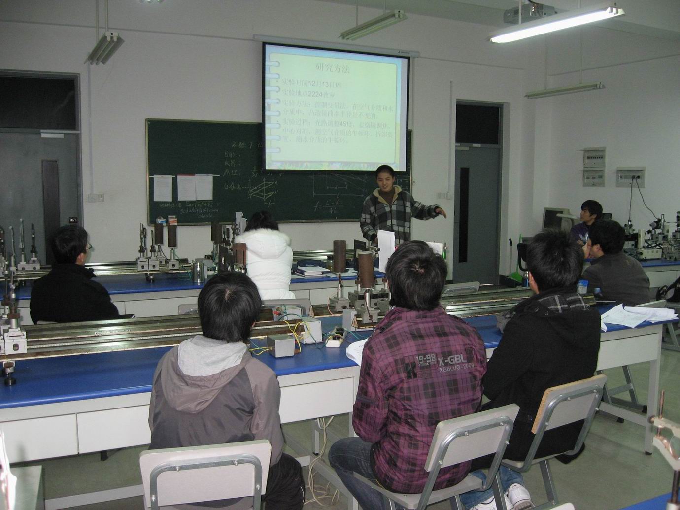 12月16日下午,在学院领导的亲切关怀、教务处的大力支持和基础教学学院领导的直接指导下由教务处和基础教学学院共同主办、物理实验室承办的“上海工程技术大学2011年度大学物理实验竞赛”复赛在大学物理实验中心举行。 参加初赛的810名同学通过考试,共有71名同学进入复赛。复赛采用实验操作和论文答辩相结合的形式,分力学和热学、光学、电学、传感器和磁学四个学科门类进行,复赛中让每位学生选择一项创新性实验来进行实验内容和实验步骤的创新设计。本次物理实验竞赛着重强调大学生实践动手能力,鼓励他们崇尚科学、追求真知、锐意创新,复赛将决出一等奖3名,二等奖15名,三等奖35名。 |