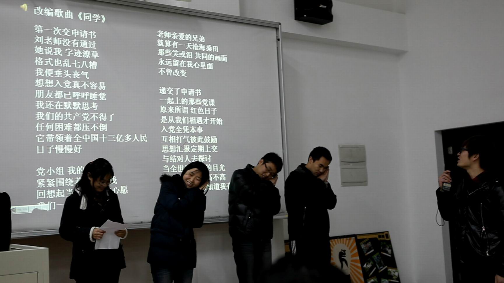 |    12月14日下午16点30分,艺术设计学院学生第二党支部学习型党支部培育项目成果汇报暨二支部总结大会于教学楼C320隆重举行。学院党总支书记许传宏老师、院党总支副书记何志琴老师、学生第二党支部书记刘蔚老师、学办刘江老师、分团委书记裘立行老师出席了汇报大会。支部全体学生党员、入党积极分子参与了本次汇报大会。 在建党90周年之际,二支部全体成员深入贯彻党的十七届四中全会精神,认真学习中国共产党党史知识,积极开展有关上海革命旧址的党史理论专题学习,踊跃参加上海红色革命旧址参观实践活动,举办海报展、摄影展等活动,依靠自己的专业知识丰富党史学习,并通过此次汇报大会以进行成果展示,以团结认真、严肃活泼的面貌展现学生第二党支部的精神风貌。 在汇报大会中,支部的学生党员与入党积极分子以新颖的汇报形式展现了一个不断创新不断进步的党支部。支部内四个党小组都发挥其特长,展现小组特色,全心投入其中。各党小组在汇报中纷纷采用小品表演、合唱、制作周公馆模型、自编歌曲等多种形式呈现,演出高潮迭起,精彩纷呈,使在场同学与老师享受红色革命党史汇报的文艺大餐中,受到一次生动的以红色革命教育为主题的精神文明教育熏陶。丰富多彩的表演环节为本次汇报总结大会添上浓重的一抹亮色! 在表演汇报之余,四个党小组分别以PPT、电子书、视频等多种多媒体形式生动形象地将党史活动与学习历程进行了汇报,绘声绘色地展现了各个小组在本学期的党史学习与实践活动的丰硕成果,并进一步交流学习心得和感想。 汇报尾声,学院党总书记许传宏老师做了重要讲话,他特别肯定和赞扬二支部在过去一年中所开展的学习型党支部培育项目党史学习的阶段成果,并殷切希望二支部成员能将党史中所传达的的红色精神、革命先烈的光荣传统和优良作风更好的落实在今后的学习与生活中,积极提升党性修养,不断用实际行动奉献社会。在同学们热烈而持久的掌声中,艺术设计学院学习型党支部党史学习成果汇报暨二支部总结大会圆满落幕! |
