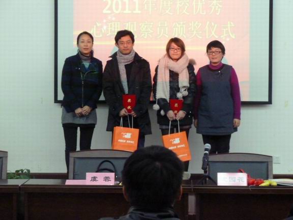 12月21日,管理学院在图文信息中心第三报告厅召开了2011年度心理工作表彰总结会。管理学院党委副书记虞蓉老师、校心理辅导中心沈园花老师、管理学院心理健康工作专职辅导员吉祥老师、院心理健康协会全体成员、全体心理观察员、2011级的班长团支书出席本次会议。 吉祥老师首先就学院2011年度心理健康教育进行了工作总结,介绍了“以和谐为主题,一个目标,两个关注,三个学会”的基本工作思路,并从组织管理、主题活动、重点关注学生三个方面介绍了学院的具体工作措施,并提出了今后努力的方向。虞蓉老师、沈园花老师分别宣布了2011年度校优秀心理观察员、管理学院朋辈互助站优秀学生干部以及管理学院优秀心理观察员名单并进行颁奖,对管理学院心理健康教育工作进行了总结和点评。心理观察员代表徐宏新同学和顾佳艳同学就心理健康工作进行了交流发言。最后,虞蓉老师提出了“终身学习,明确责任,提高自身素质,达到有效危机干预”的工作理念,举例强调了有效危机干预的重要性,并感谢各位心理观察员一年来的默默付出与奉献。 通过这次工作表彰总结会,大家对心理健康工作有了更加清晰的认识,与会同学都表示收获颇丰,纷纷表示将竭尽全力做好心理健康教育工作。 |