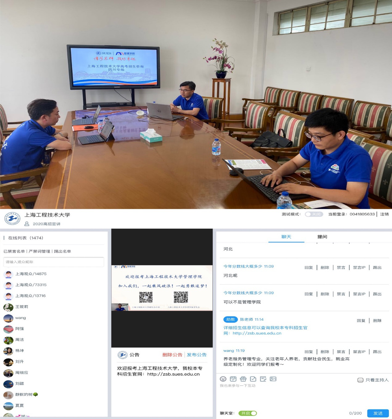 7月19日至24日,管理学院举办了五场2020年秋季高考招生宣讲会。其中,7月23日举办的“上海工程技术大学高考招生线上宣讲会四川专场”效果尤为显著,近1500人次参与,会场气氛热烈。管理学院院长胡斌通过中国教育在线,全网进行了我校高考招生宣讲。胡斌院长详细地讲解了学校及学院发展状况,推介了学校及学院特色专业,介绍了学校招生政策,使考生及家长对上海工程技术大学及管理学院有了更为充分的认知,消除了部分考生的报考疑虑,巩固了考生报考我校的决心。同时,学院老师也在直播间与考生进行了积极互动。