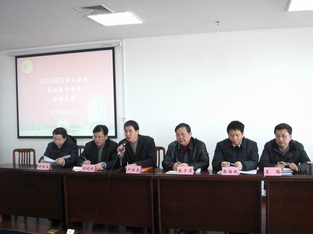 |   2月17日下午,基础教学学院在行政楼1508室召开2011-2012学年度第二学期工作会议,学院党政领导及全体教职工参加了会议,会议由党总支书记卢柏龙主持。 会上,张子厚院长传达了学校会议精神,并就新学期学院的工作计划向全体教职工做出部署。他指出学院新学期的总体要求是继续狠抓人才队伍建设,狠抓教书育人,狠抓基础课程的教学质量,狠抓学院的科研水平,狠抓实验环节等工作。在教书育人方面,要深化教学改革,提高教学质量,适应学校新的发展需要。在培育学院的大学文化方面,引导和激励全院师生爱校敬业、勤奋创新、乐于奉献,积极主动地、创造性地工作和学习。通过学院新修订的各项规章制度,用先进的文化培育人,用科学的制度管理人。在师资队伍建设方面,继续选派优秀教师到国内外做访问学者,逐渐形成一支以中青年骨干教师为主体的优秀的教师队伍。在提高教学质量方面,规范日常教学管理,加强教学环节的检查与管理,完善学院教学质量保证与监控体系。在科研工作方面,对基础教学学院教师教科研工作实行分类指导和分类管理,加强学院科研团队建设和培养,把完成学校下达的科研指标与学院上水平结合起来,在完成指标的同时,把重点放在提高水平上。 随后,刘晓民、张朝民两位副院长分别就分管的教学工作、科研工作、实验室管理等方面再次强调了新学期开学工作的要求和重点,确保教学秩序与质量。 本次全院大会明确了本学期学院发展的总体要求和工作重点。相信在学院党政领导和全体教职工的共同努力下,新学期各项任务能顺利完成,而且基础课程的教学质量、教学水平和科研水平能上升到一个新的高度。 |