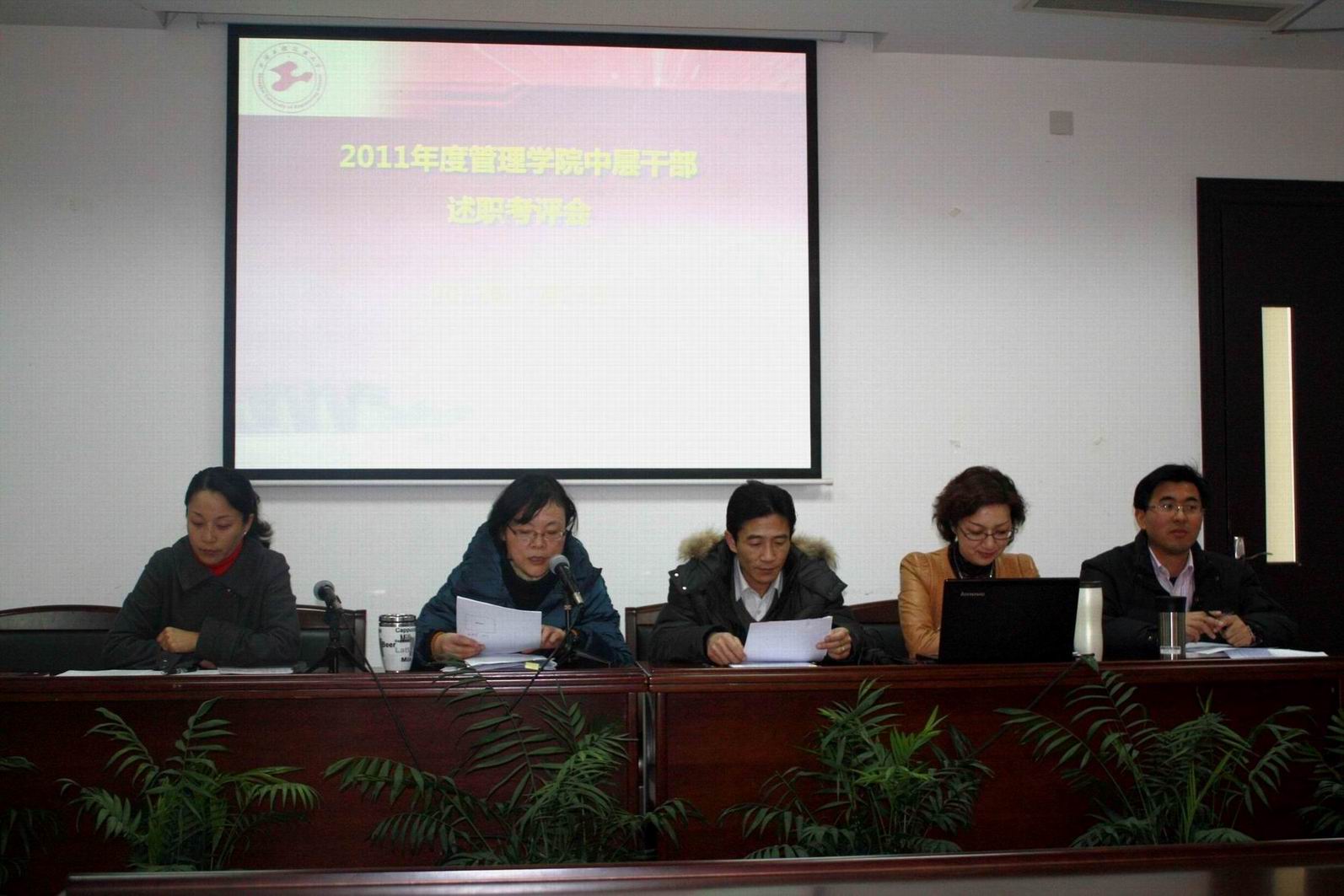 2月23日下午13:30,管理学院在行政楼205会议室召开2011年度中层干部述职考评会。校党委组织部部长张伟林老师,管理学院党政领导,党委委员,各系(室)负责人和支部书记、工会小组长、院教代会代表等近四十人参加了考评会。会议由管理学院党委书记吴清老师主持。 吴清老师首先对组织部和管理学院教职工代表参加考评表示感谢。她指出,述职考评会既是领导干部对自己一年工作的回顾,也是广大教师对干部领导进行民主评议、开展党务和政务公开的重要途径。 随后,管理学院党委书记吴清,常务副院长吴忠,副院长邱羚,副院长胡斌,党委副书记虞蓉分别根据自己的岗位分工,按照“述学、述职、述廉”的要求,总结回顾了各自己2011年度在贯彻落实党的方针政策、履行岗位职责、完成工作目标等方面的情况。 最后,参加考评会的教职工从“德、能、勤、绩、廉”五个方面对学院党政领导班子成员进行了测评,并对党政领导干部落实党风廉政政策责任制情况进行了民主评议。 |
