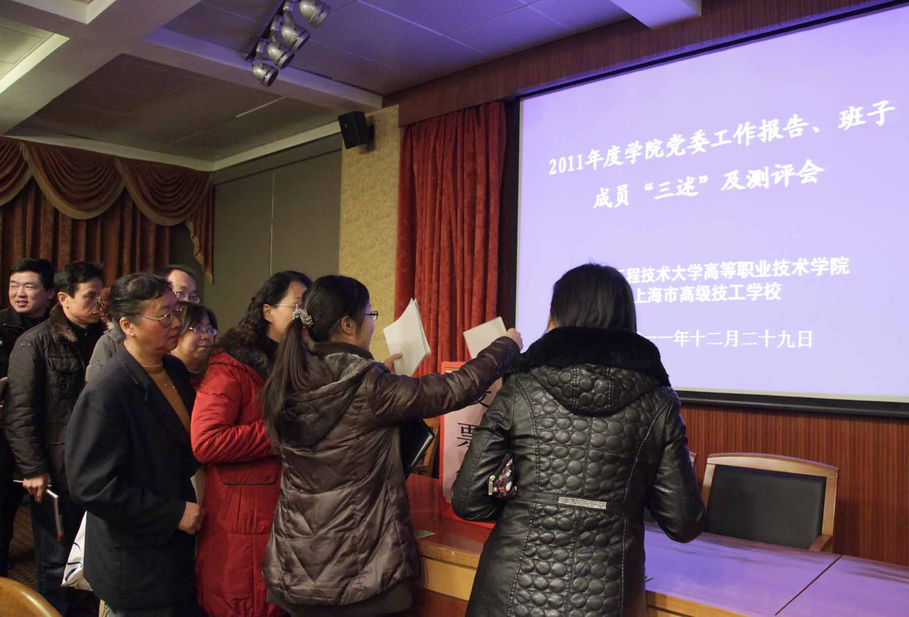12月29日上午,高职学院在综合楼9楼报告厅举行了2011年度学院党委工作报告,班子成员“三述”及测评会。学校组织部部长张伟林出席了会议。高职学院党政领导班子进行了“三述”汇报,学院各部门党政负责人及教代会代表共62人参加了会议,会议由高职学院党委柳如荣书记主持。
