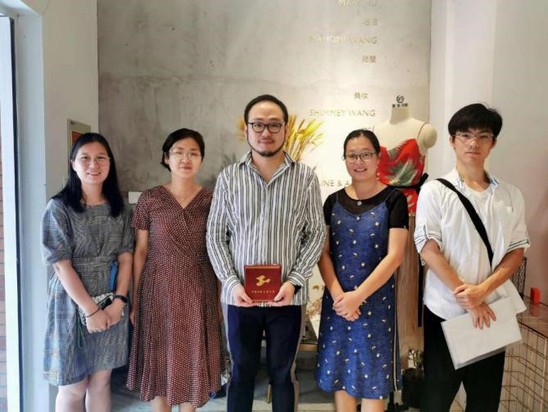 7月29日上午,纺织服装学院党委书记朱君璇,党委副书记谢志霞,学生工作办公室主任沈智莉以及2名学生一行五人来到MW Fashion工作室,走访纺织服装学院优秀校友王立浩。