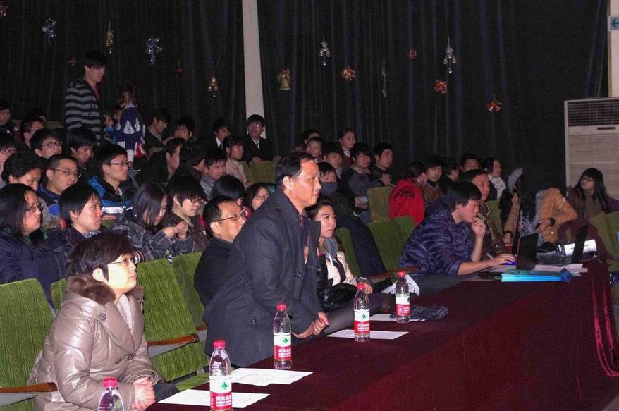 |   12月27日晚18点,学院在新村路校区举行了2011年度优秀学生表彰会暨迎新文艺晚会。学院党总支书记、院长姚黎明,院领导陶和林、院工会主席徐瑞等与新村路校区全体师生在大礼堂欢聚一堂,共享收获果实,共同辞旧迎新! 辞旧迎新晚会以航空专业技能班的集体舞开场,姚黎明院长作了热情洋溢的致辞,他肯定了2011年学院发展的收获,在全体师生努力下取得的教学成果,展望了新年龙腾虎跃,奋力拼搏的前景,激励大家努力争取更好成绩。迎新晚会上表彰了学院新村路校区优秀学生8人、优秀团员团干部13人及文明寝室与文明岗积极分子荣誉获得者。 辞旧迎新文艺晚会在学工办洪老师指导下,学院团总支、学生会认真策划组织,各专业班学生踊跃参加。晚会表演有独唱、小组唱、合唱、歌舞、西班牙舞、诗朗诵、钢琴演奏、空手道表演等,姚黎明院长和学院教工也上台进行了演唱。师生联欢表演的节目,使晚会气氛热烈,欢乐融融。晚会最后以团总支、学生会干部的一曲大合唱《朋友》为导线,引爆会场全体师生大合唱,演出在热烈欢快的气氛中圆满结束! |