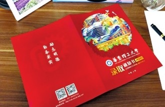 华东政法大学录取通知书以华政红为主基调,包含着松江校区校门、长宁校区标志性建筑韬奋楼、校训等华政元素,以华政主建筑为背景,古朴而庄重,代表着华政的深厚文化底蕴,红色表达了对新生的欢迎和祝福。