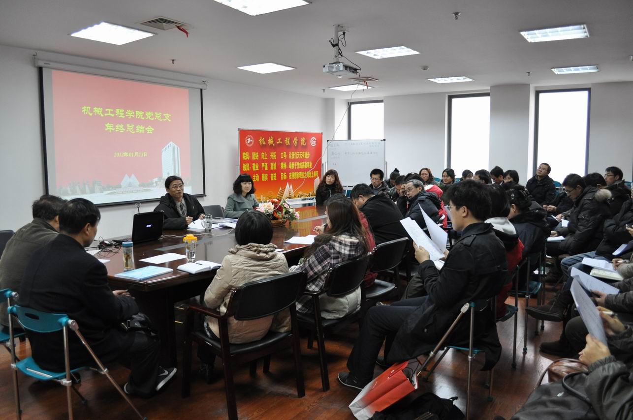 |  1月13日下午,机械工程学院党总支在行政楼学院会议室召开2011年党务工作年终总结会暨学生工作交流会,党总支书记刘牧众,党总支副书记朱蓓和全体党员教师出席会议。会议由党总支副书记朱蓓主持。 会上,党总支书记刘牧众首先总结了2011年的党务工作,他从建立学习型党支部和争先创优工作说起,回顾了一年的工作,肯定了各位党员教师的付出,表达了机械学院党总支对党员教师的感谢。学生第一党支部书记王雁老师和教师第二党支部书记周志锋老师分别结合学院科技先锋计划汇报了学习型党支部的建设工作。 随后,机械工程学院党总支副书记朱蓓围绕“大”“学”“生”三个字的不同内涵向大家汇报了2011年学生工作,特别是通过实施党员导师计划在推进学风建设方面取得的成绩。 最后,党总支书记刘牧众向全院党员教师传达了2012年校党委的工作部署,勉励全体党员教师继续发扬敢于担当和精益求精的工作作风,为学院的发展做出新贡献。