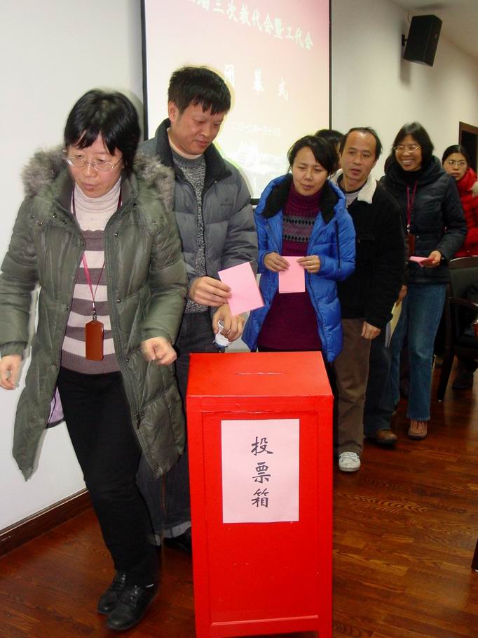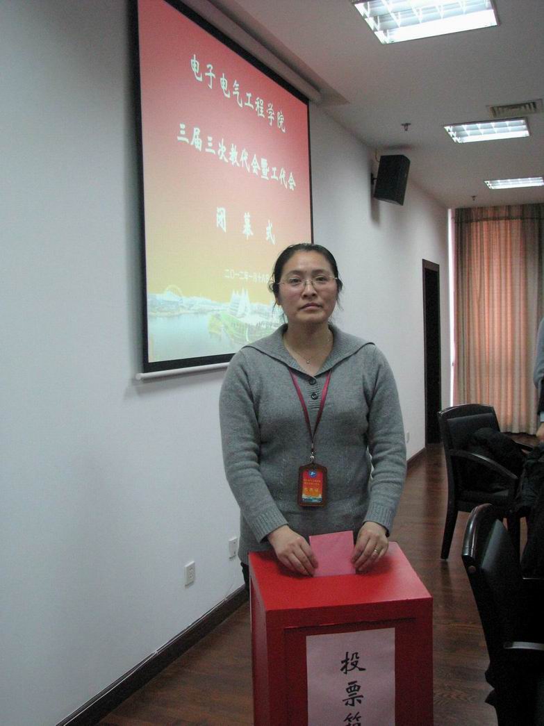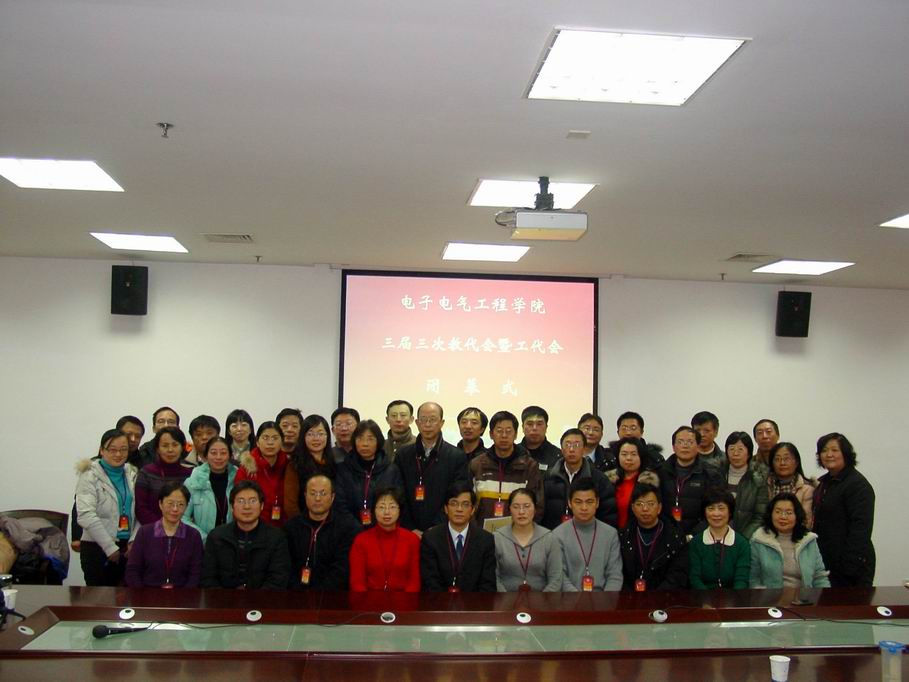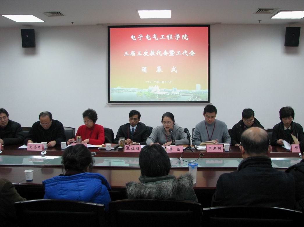 |      1月18日下午1:00,电子电气工程学院在行政楼B402举行第三届三次教代会暨工代会闭幕式,学院党政领导班子出席,电子电气工程学院党委茅蕾书记主持了会议,40名正式代表参加了大会。 首先是各代表小组组长作交流发言,交流报告的审议情况。代表一致认为,《2011年度电子电气工程学院工作报告》全面切实地总结了学院一年来的工作和所取得的成就。完全符合学院发展实际,反映了全体教职员工的愿望。会议认为,《2011年度电子电气工程学院工会工作报告》全面详实地总结了学院工会一年来的各项工作,展示了所取得成绩。 本次教代会还进行了学院工会组织委员的改选工作。改选采用无记名投票方式选举陈小龙老师为新任院工会组织委员。 大会采用无记名投票表决方式一致通过了《2011年度电子电气工程学院工作报告》、《2011年度电子电气工程学院工会工作报告》。 会议号召:2011年全院教职员工,要在学院党政的领导下,与时俱进,解放思想,统一认识,团结一致,振奋精神,勇于拼搏,开拓创新,认真扎实地做好本职工作,为学院内涵建设的推进和发展,为核心竞争力的打造和提升创造新的业绩而努力奋斗! |
