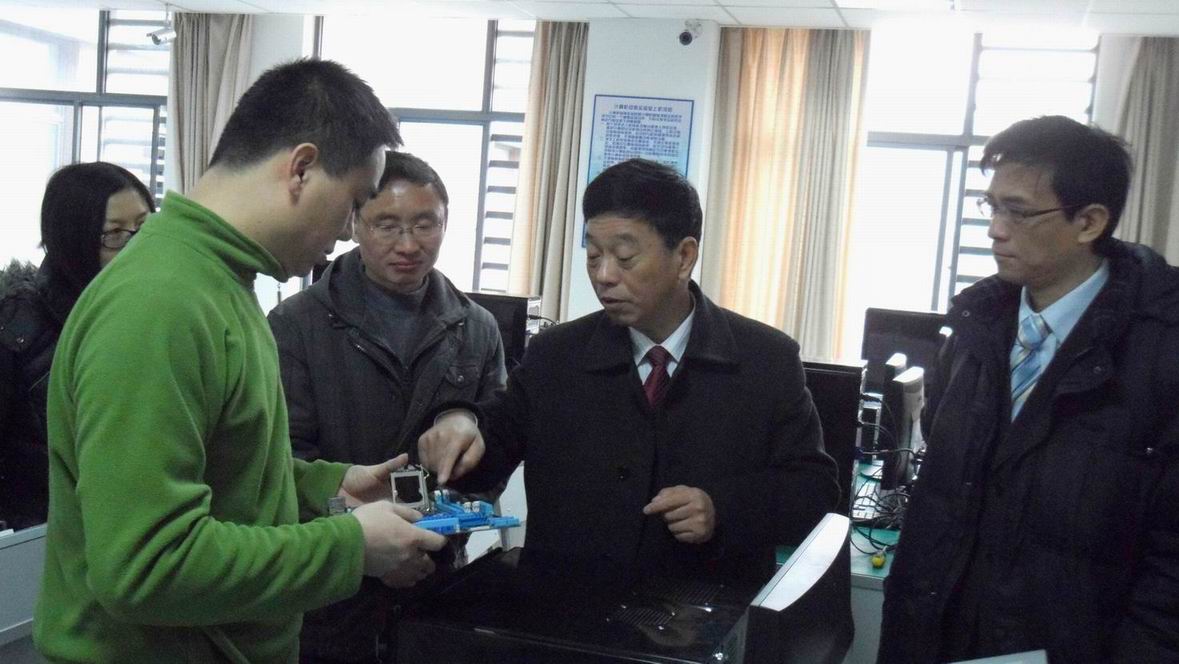 院长王裕明和部分实验室教师向陈力华副校长汇报了卓越工程项目的实施进度,平台建设的完成情况,并一同观看了各机房上课情况的视频短片。